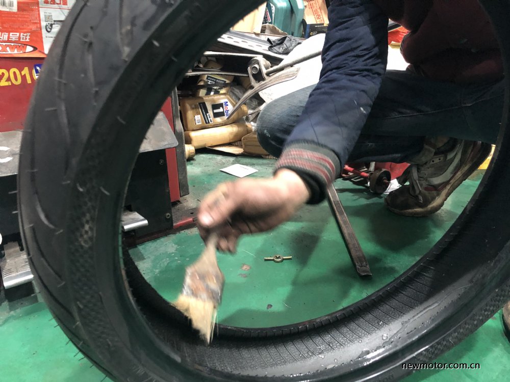 换新胎前刷一层润滑油,更好的保护轮毂,方便轮胎装上。