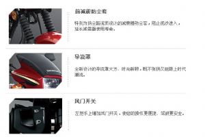 55-65码之间车身比较震,车身线条好看,仪表盘蓝色幽光。40码一下车很静,85以上车子开始咆哮,极速96码。前盘刹点刹给力,前减震很软,后减震硬。缺点配件太贵,反光镜是反牙的